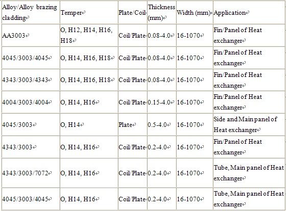 aluminium fin strip 3003 1060 1100 and 4343+3003+4343 . 4343+3003+7072 ect